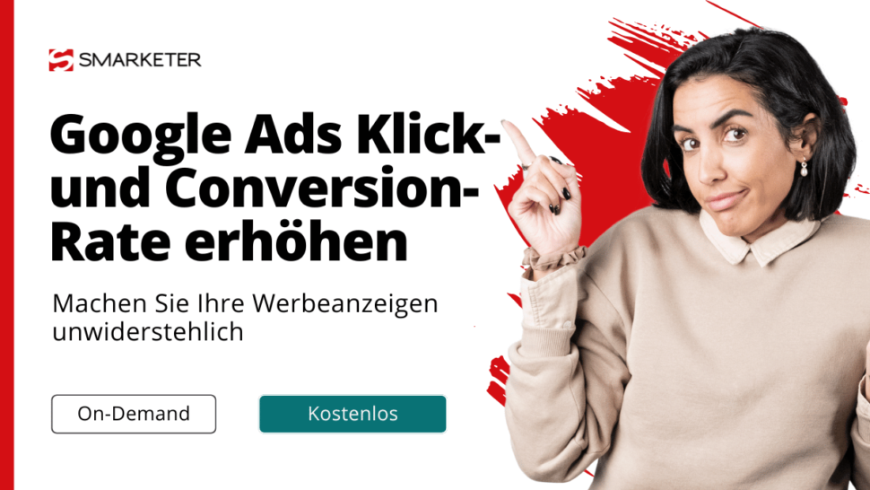 Niemand klickt Ihre Google Ads? Melden Sie sich jetzt zu unserem Webinar an und lassen sich von unserer SEA-Expertin zeigen, wie Sie Ihre Werbekampagnen effizienter gestalten können. Entdecken Sie innovative Strategien, die Ihre Werbekosten senken und die Performance Ihrer Anzeigen durch steigern durch höhere Click-Trough-Rate und Conversion-Rate. Dieses Webinar ist Ihre Gelegenheit von den Besten zu lernen und Ihre Digital Marketing Skills zu erweitern.